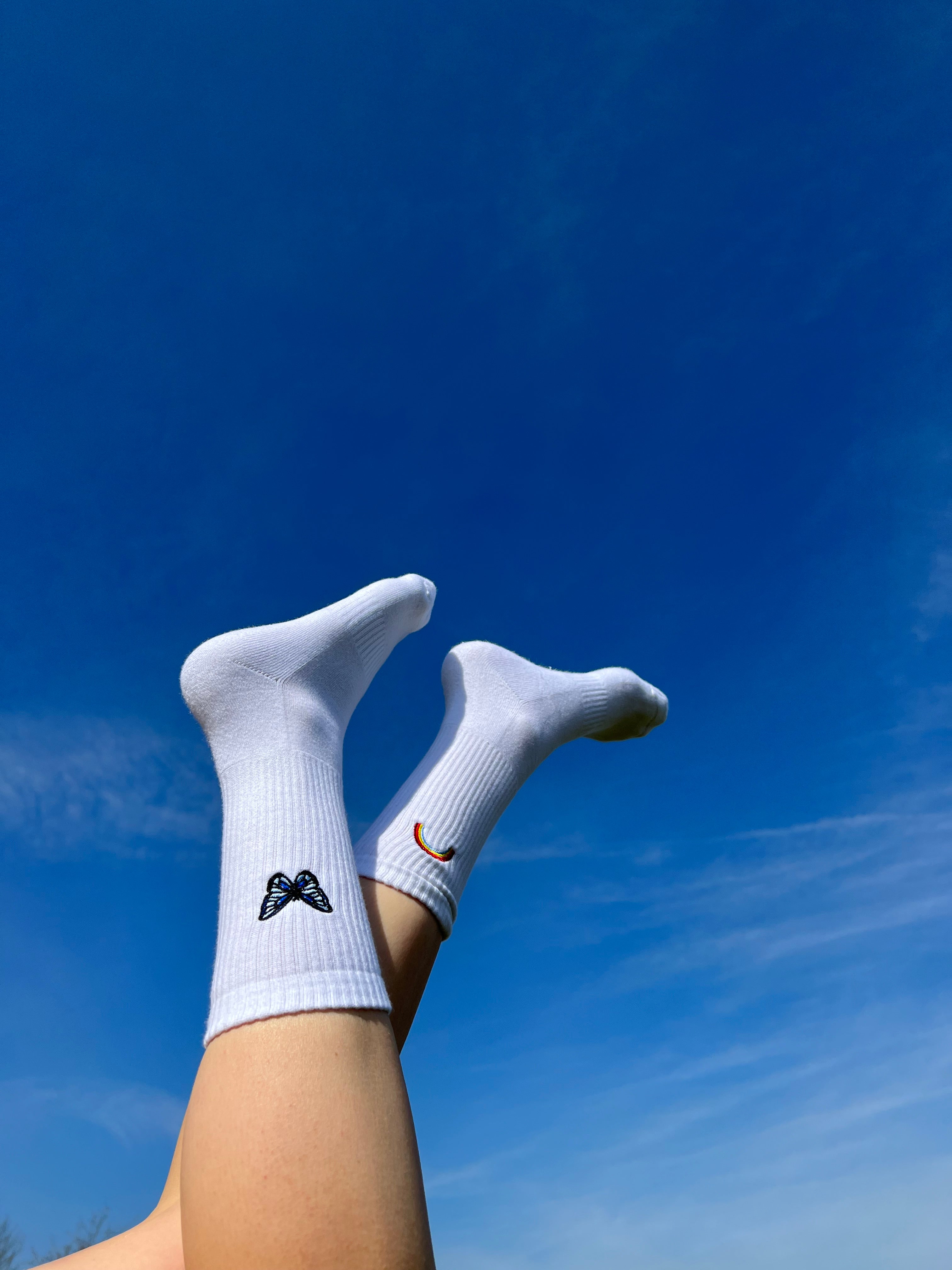 De sokken zijn beschikbaar in het wit en zwart. De maximale borduurgrootte is 4 cm, dus de ontwerpen zullen niet enorm gedetailleerd zijn.